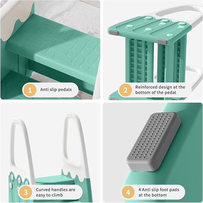 - Stable and Eco-friendly :Safety is paramount with our well-designed "A" frame structure, thick non-slip pads, and wider pedals that provide enhanced stability. The comfortable, easy-to-grip handles are free from burrs, ensuring a safe experience. Made from non-toxic, BPA-free PP plastic, this stool is both solid and environmentally friendly.