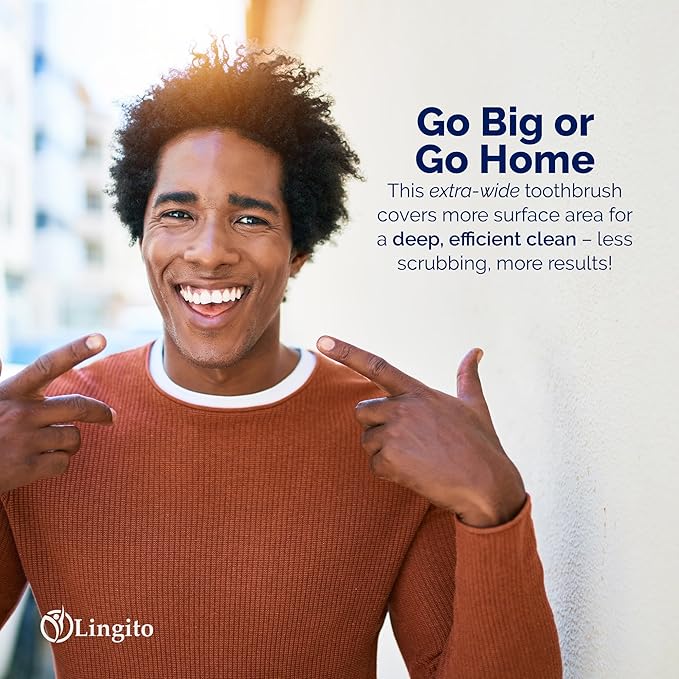 Lingito Smokers Toothbrush Wide-Head, Extra-Firm Hard-Bristle Oral Care for Tough Stains, Deep-Cleaning Manual Brush for Coffee & Tobacco-Stained Teeth, Premium Stain Removal & Brightening - (2 Pack)