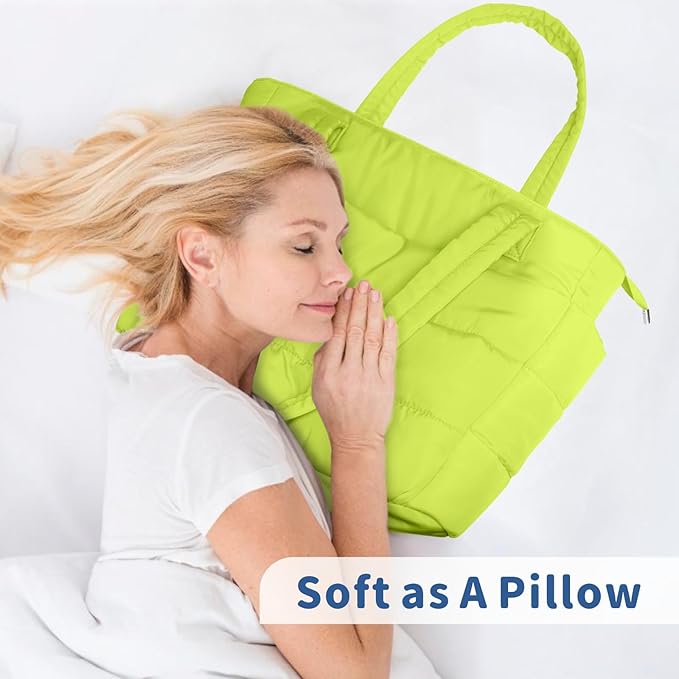 TOPDesign Puffer Tote Bag for Women, Lightweight Puffy Handbag with Compartments, Quilted Shoulder Bag for Work, Travel, Gym