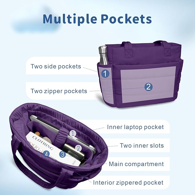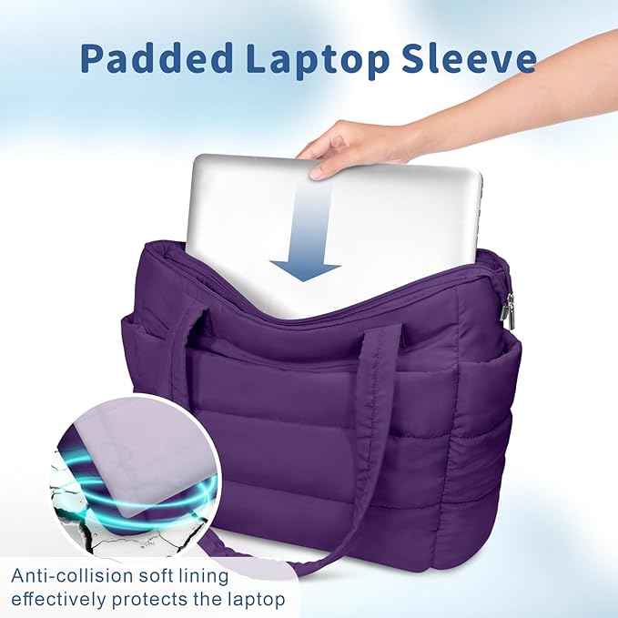 TOPDesign Puffer Tote Bag for Women, Lightweight Puffy Handbag with Compartments, Quilted Shoulder Bag for Work, Travel, Gym