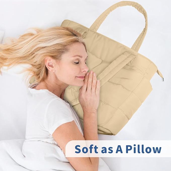 TOPDesign Puffer Tote Bag for Women, Lightweight Puffy Handbag with Compartments, Quilted Shoulder Bag for Work, Travel, Gym