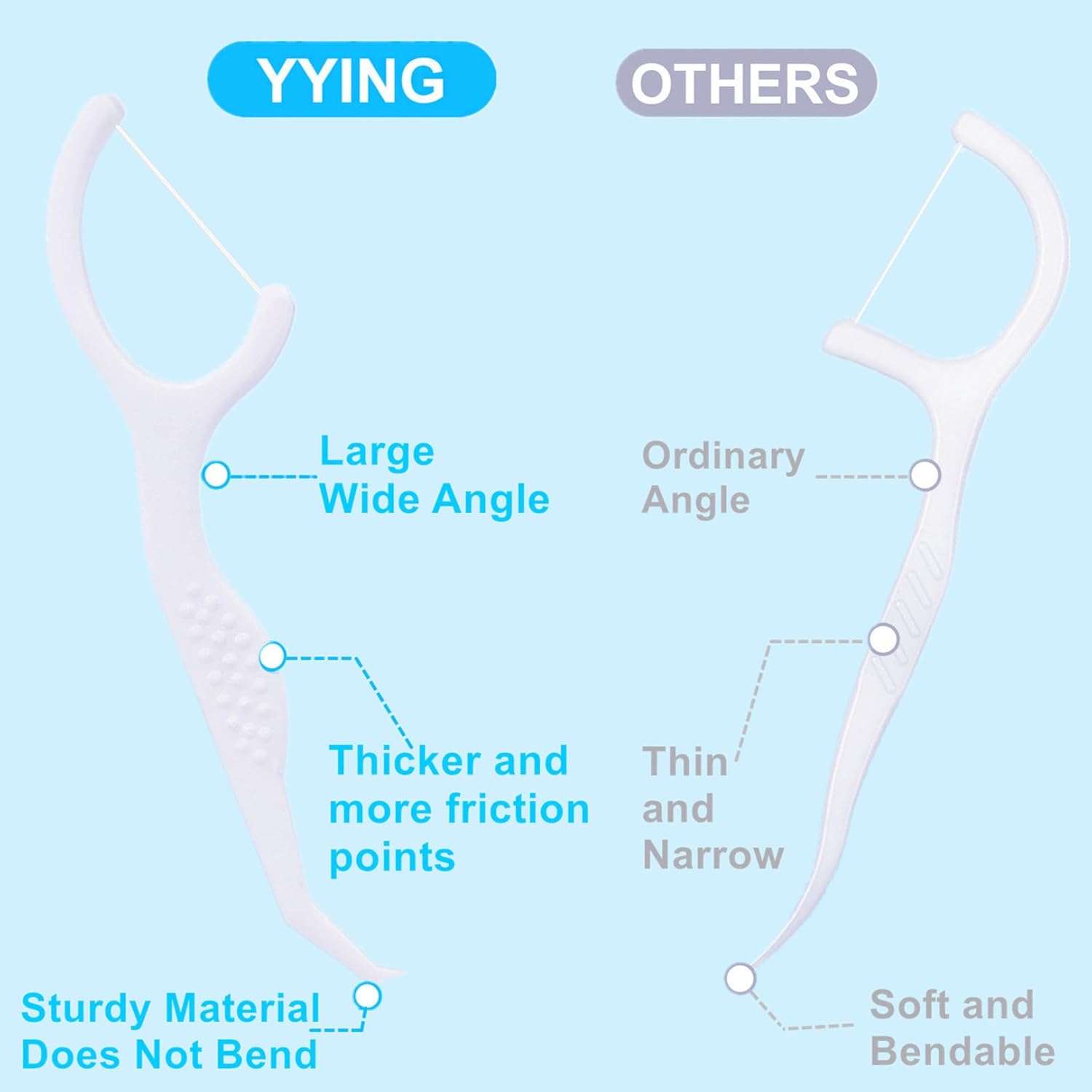 - Optimised Contour: YYING Dental floss picks have the large angle design makes it easier to remove plaque and food debris deeper in the mouth than regular right-angle floss.