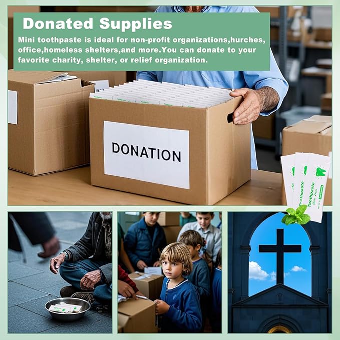 - Donated Supplies:Travel toothpaste bulk is ideal for non-profit organizations, churches, homeless shelters, and more.You can donate to your favorite charity, shelter, or relief organization