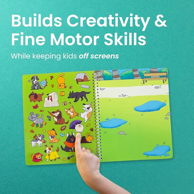 - Learn through play: Kids build fine motor skills, explore spatial awareness, and strengthen hand-eye coordination as they peel and stick stickers onto colorful scenes! Engaging in conversations about the sticker book characters will help imaginations run wild & encourage make-believe and pretend that can foster bonds between you and your child. Go ahead - play on!