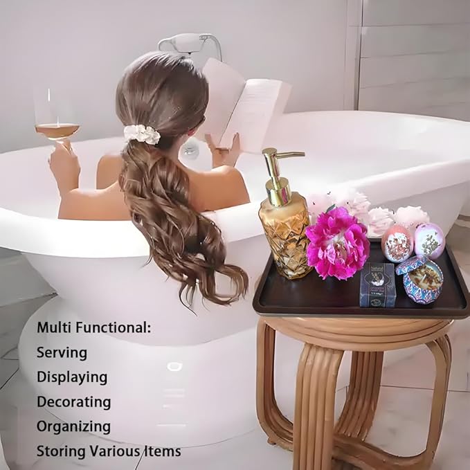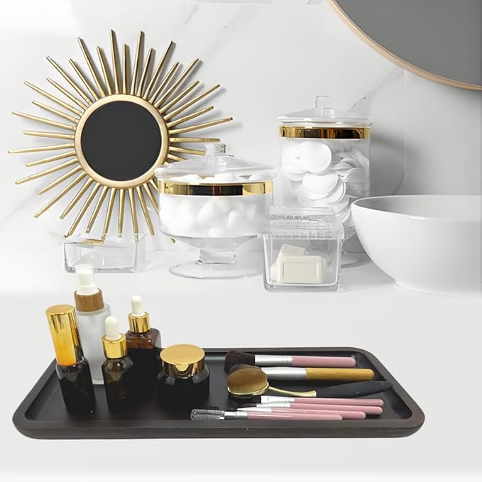 - Size:Specially designed tray size 14 x 5.9 x 0.8 inch great for storing some small things & bathroom counter organizer, such as candles, perfumes, jewelry, toiletries, cosmetics, hand towels, toothbrush holders, soap dishes, glasses, watch, bottles, small crafts, decorations, small green plant etc.