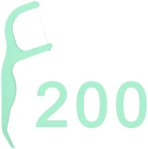 Dental Floss Picks Extra Strong with Easy Grip Handle, Professional Clean Flosser Picks Toothpicks, Fresh Mint, 200 Count, Green