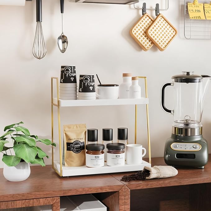 - 【Versatile Counter Organizer】- The 2-tier countertop organizer can be used in more than just the bathroom! Use them in the kitchen as a way to elevate your table centerpieces, on your bedroom desk, coffee station, dressing room or dinning room to organize your stuff. This bathroom storage organizer countertop can even be placed under sink, over toilet or room corner to keep space away from the mess.