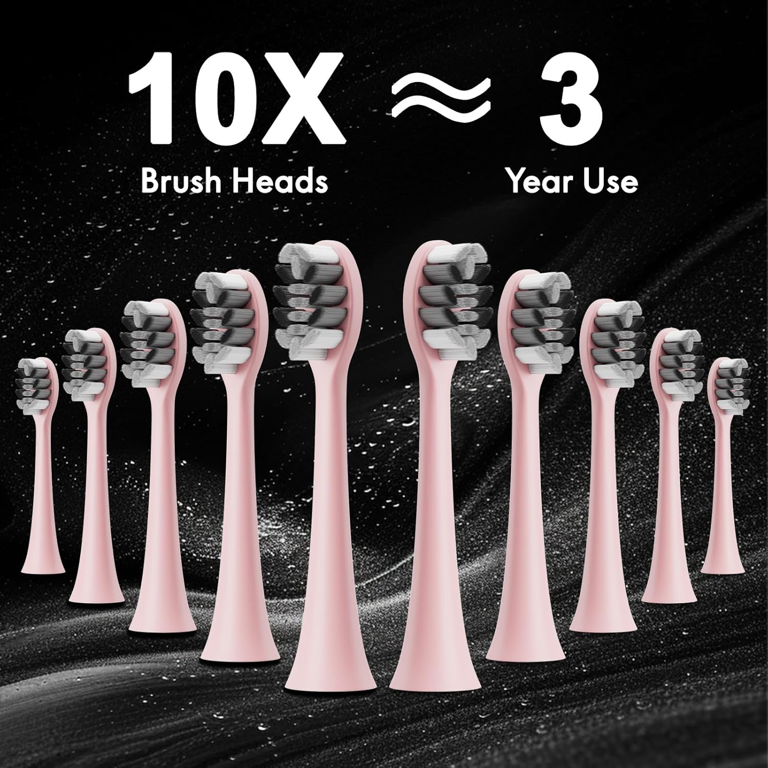 - Long-Lasting Performance: This comprehensive set includes 10 replacement brush heads (each lasting up to 3 months), a travel case, USB charging cable, user manual, and stand, ensuring hassle-free oral care for up to 30 months without constantly needing to buy new brush heads.