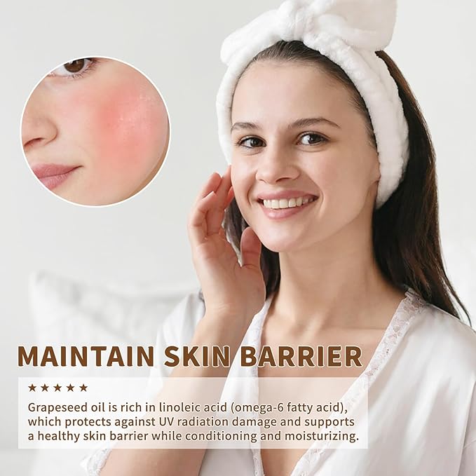 - Is Grapeseed Oil Healthy?: Our grapeseed oil for skin contain ingredients like Omega-6 fatty acids, and it is high in polyunsaturated fatty acids, linoleic acid Vitamin E which contribute to some health benefits.