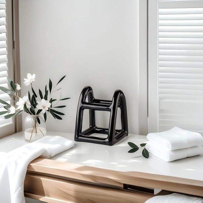 Handmade Ceramic Holder Stand for Toothbrushes, Makeup Brushes, and Pens - Minimalist Design for Bathroom Vanity and Countertops Decor (Black)