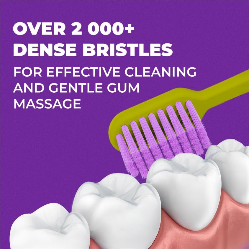 Medium Soft Toothbrush for Adults | Ultra-Dense Rounded Bristles | Gentle on Gums | Deep Plaque Removal | Whiter Smile | Suitable for Braces | 2 Pack Multicolor