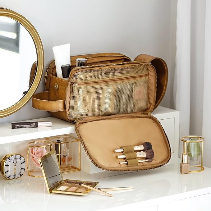 - WATER RESISTANCE STURDY MATERIAL: Exceptionally well built, the toiletry bag is made of PU leather, water-resistant nylon lining to keep moisture out of the bag. Premium zipper and reinforced seams are also implemented for long-lasting performance