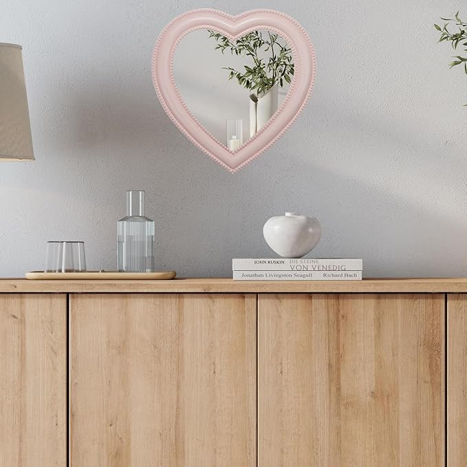 Heart Shape Makeup Mirror Wall Mounted Mirror with Hanging Hole for Home Room Decoration Birthday Gift Valentine's Day Gift for Girl,10.6x10.2inch(Pink)
