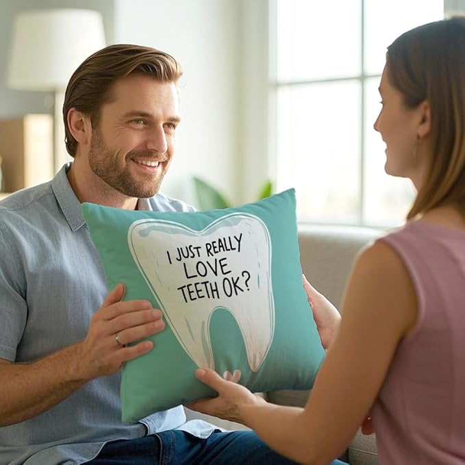 Cirzone Dental Gifts for Women -18x18Inch Throw Pillow Cover Best Teeth Gifts with Gift Box Perfect Birthday National Dentist Day Gifts for Home Sofa Decor
