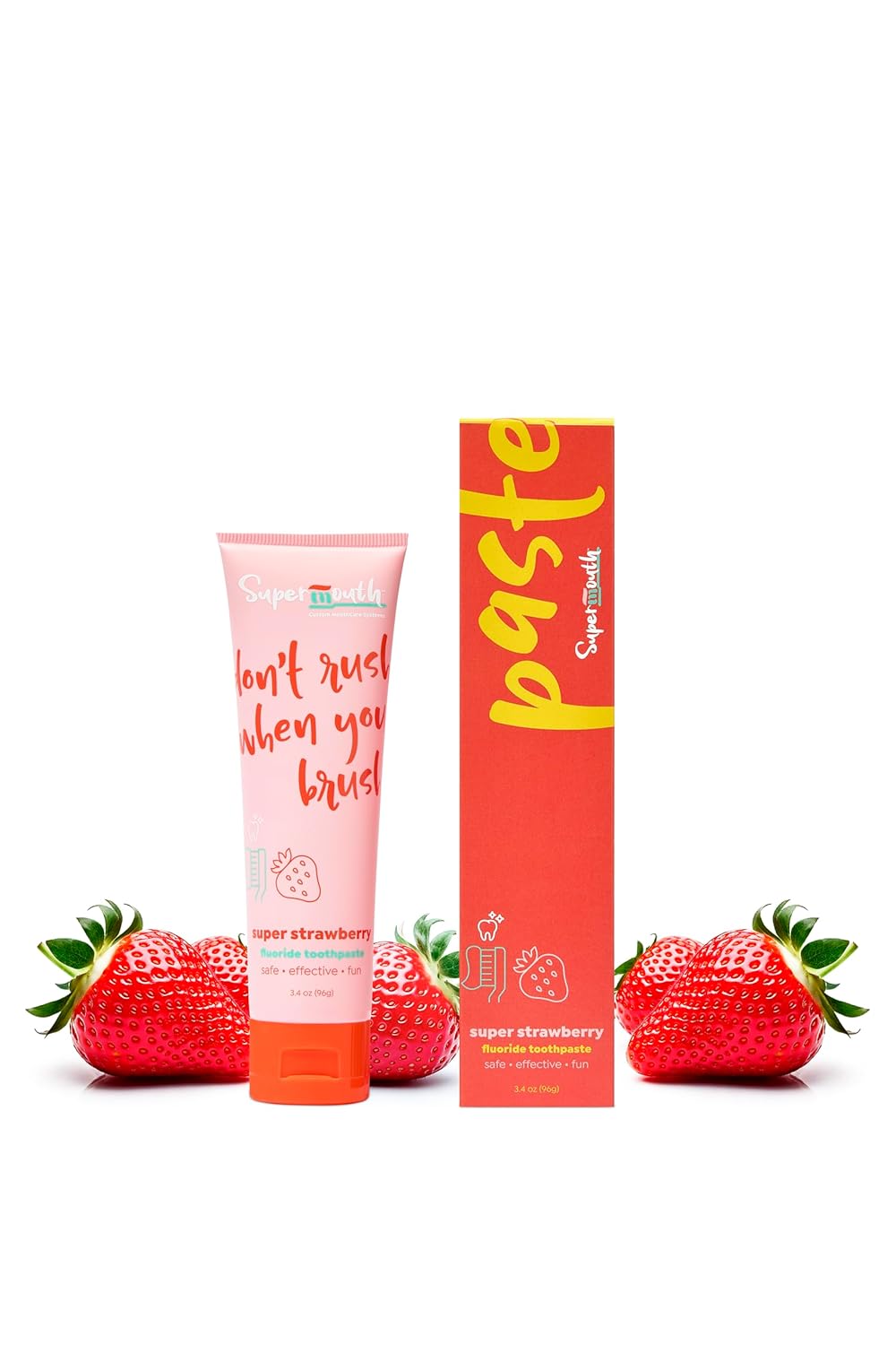 SuperMouth Fluoride Toothpaste - Adults & Kids, Fights Cavities, Whitens, Nano Hydroxyapatite, Dentist Developed, Safe Clean Ingredients, Gentle on Sensitive Teeth, Vitamins D3 & K2, 4 Tasty Flavors