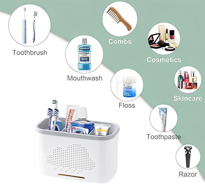 - Drainage system: The product has drainage holes both inside and outside, which can keep items dry and clean. It is suitable for bathrooms, dressing tables, toilets, and kitchens