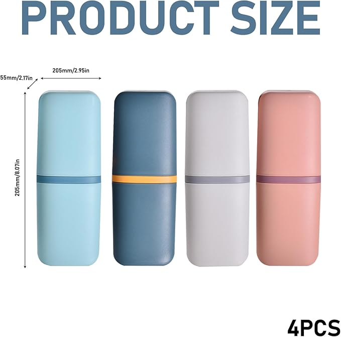 - 【Toothbrush Travel Case Set】You will get 1 x dark green, 1 x blue, 1 x pink, and 1 x white toothbrush holder that measure 8" x 2.9" x 2.1" (20.5 x 7.5 x 5.5 cm) in size, great for traveling or weekend getaways. Please check size before purchasing