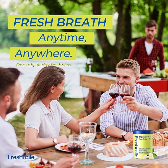 - FRESHMILE TRAVEL-SIZE TOOTHPASTE TABLETS No more messy toothpaste tubes—just pop a tablet and brush! Whether you're at home, on a date, after coffee, or on the go, Freshmile toothpaste tablets offer a quick, easy, and travel-friendly way to keep your breath fresh anytime, anywhere.