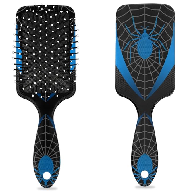 Kids Hair Brush for Boys Girls Toddler - Detangler Hairbrush for Wet Dry Thin Long Curly Hair Pain-Free Comb (Blue Spider Web)