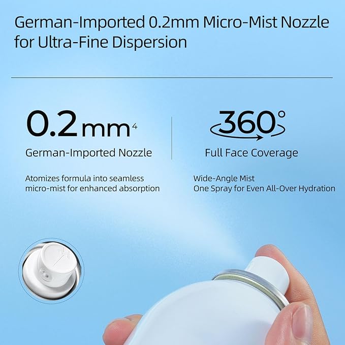 - The 0.22mm nozzle delivers a fine face spray mist hydrating that gently nourishes the skin, boosting hydration and improving the skin’s natural moisture retention.