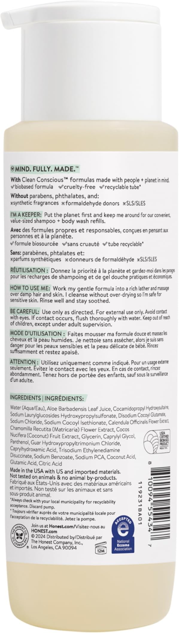 The Honest Company 2-in-1 Cleansing Shampoo and Body Wash for Sensitive Skin Gentle Tear-Free Hypoallergenic Baby with Naturally Derived Ingredients Fragrance-Free 18 fl oz