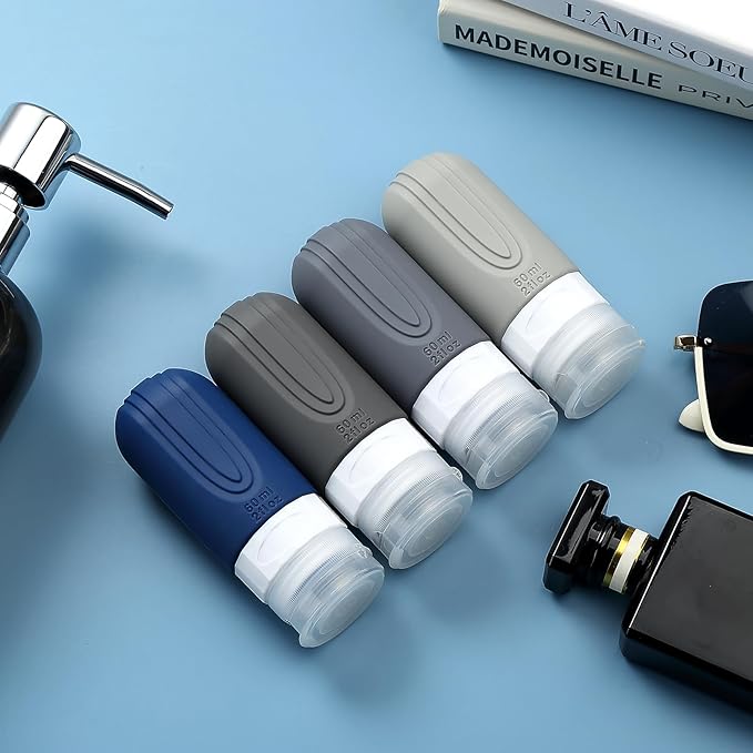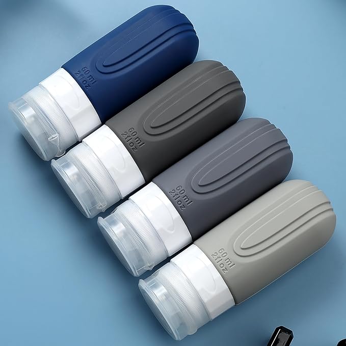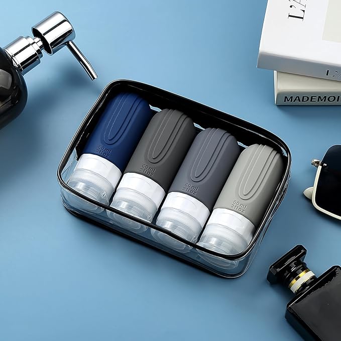 - TSA carry on approval: 4 pack 2 oz silicone travel bottles, very suitable for shampoo, conditioner, shower gel, lotion, hand sanitizer and shower gel. It is equipped with a high-quality zipper transparent wash bag, which saves space and allows you to travel long distance freely like a professional.