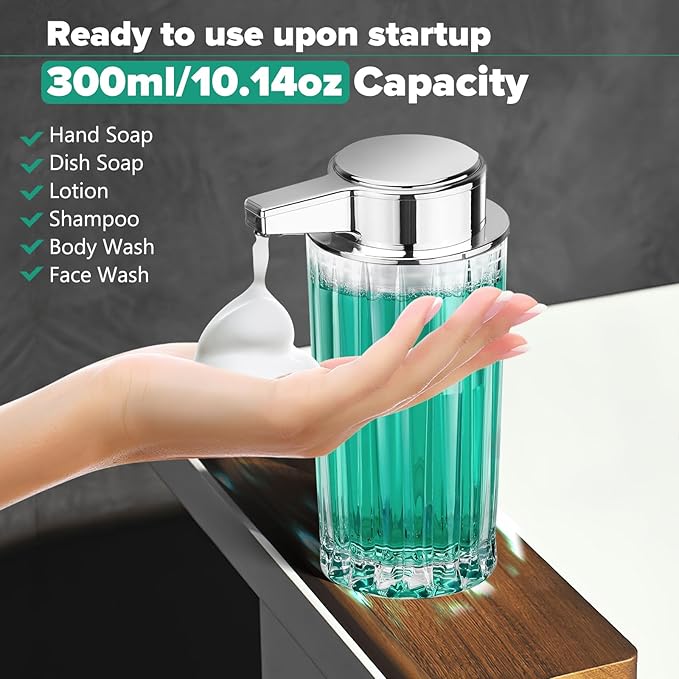 - CONVENIENT AUTOMATION: Infrared sensor ensures precise soap dispensing. 0.9S soap dispensing time, ready to use, no complicated settings required