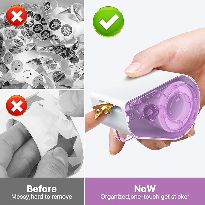 - Tidy & Organized: Say goodbye to cluttered sticker sheets! The sticker roll dispenser keeps your stickers neat, organized, and easy to access, preventing them from getting stuck together or damaged. Dispense teacher stickers to kids or students easily.