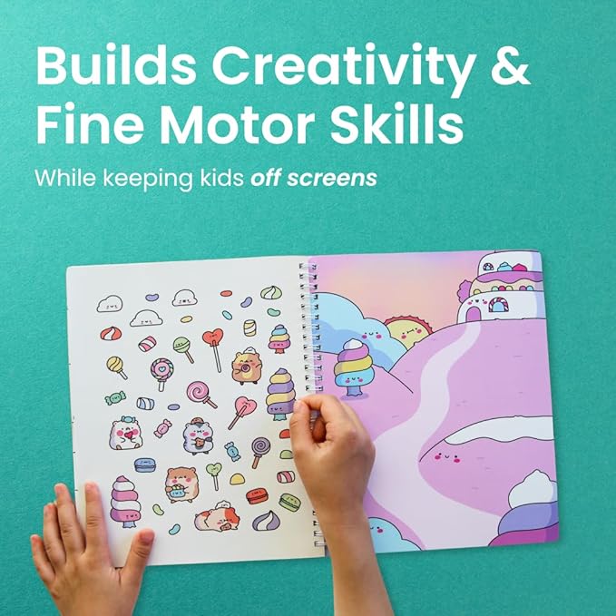 - Learn through play: Kids build fine motor skills, explore spatial awareness, and strengthen hand-eye coordination as they peel and stick stickers onto colorful scenes! Engaging in conversations about the sticker book characters will help imaginations run wild & encourage make-believe and pretend that can foster bonds between you and your child. Go ahead - play on!