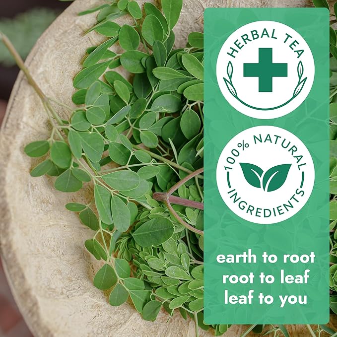 - HEALTH BENEFITS Moringa herbal tea is made from the leaves of the Moringa oleifera tree and supports a wide range of potential health benefits due to its rich nutritional profile and bioactive compounds. Specifically, it contains essential vitamins such as A, C, and E, which support immune function, skin health, and antioxidant protection. In addition it provides calcium, potassium, magnesium and iron that may promote bone health, muscle function, and oxygen transport in the blood.