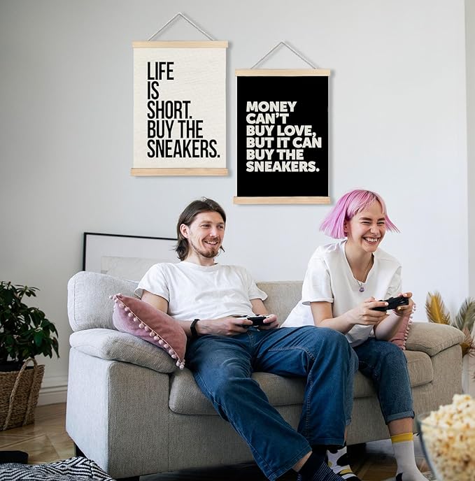 Yomisex Sneaker Wall Art, Shoes Poster, Sneakerhead Gifts for Men, Sneakerhead Room Decor, Trendy Sneaker Canvas Prints Wall Art Framed for Teen Boys Guys Mens Room Bedroom, 12x16 Inch Set of 2