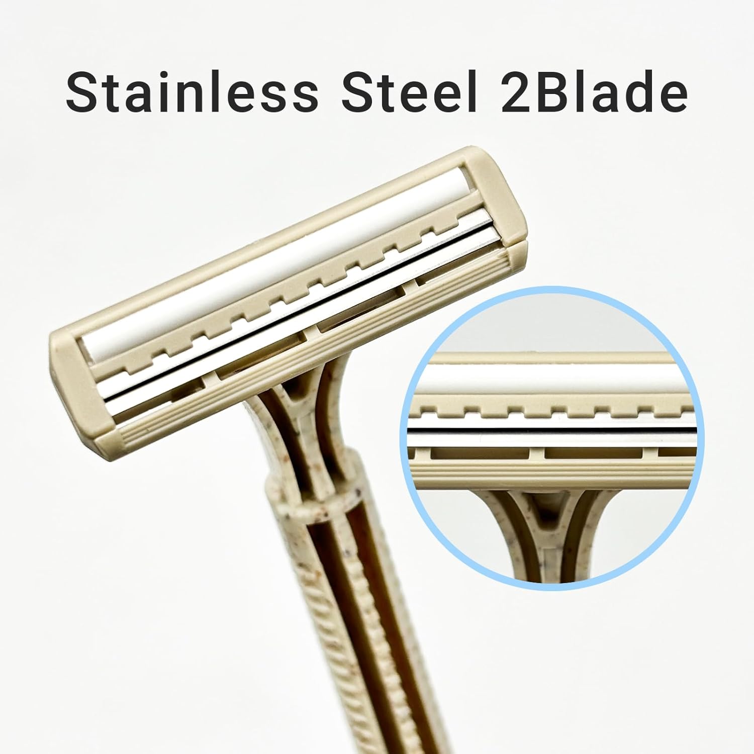 Disposable Shave Kit for Men &Women - 100 Pcs Wheat Straw Razors and Cream Bulk, Individually Wrapped Portable Toiletries Amenities for Hotel, Airbnb, Homeless, Shelter, Charity, Camping and Travel