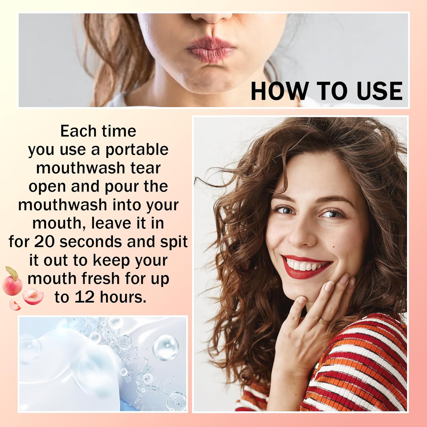 40PCS Peach Oral Care Travel Mouthwash,Fresh Breath Travel Size Mouthwash,Individually Wrapped Mini Mouth Wash,Refreshing Oral Mouth Rinse,Oral Cleaning Mouth Wash for Adults