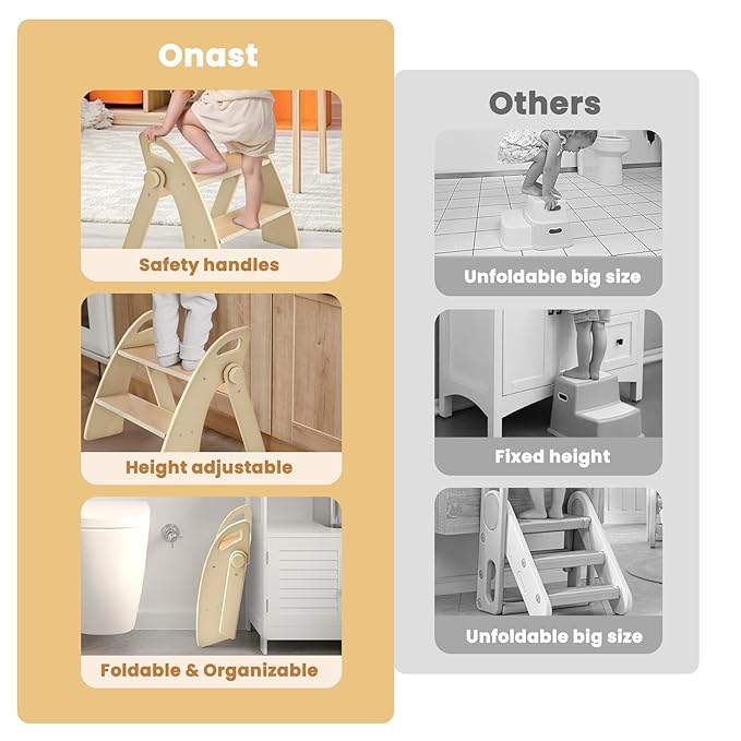 - HELP CHILDREN WASH HANDS AND TOILET TRAINING: The kids step stool is suitable for kitchen sinks, bathroom toilets, bookshelves; it can help children wash their hands, brush their teeth, use the toilet and carry things; you can also use the kids step stool to toilet train your child, cultivate your child's independence, which is more helpful for your child's growth