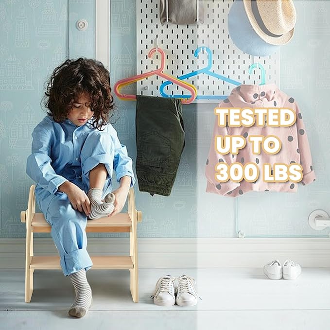 - EASILY HOLDS 300 POUNDS OF ADULT WEIGHT: The children's footstool can hold up to 300 pounds of adult weight standing on it, you don't need to worry about the footstool breaking; we use the best natural bamboo to make the children's footstool, which is stronger than other wood, and polished bamboo, the thickness of bamboo is up to 0.6 inches, to ensure the safety of the child