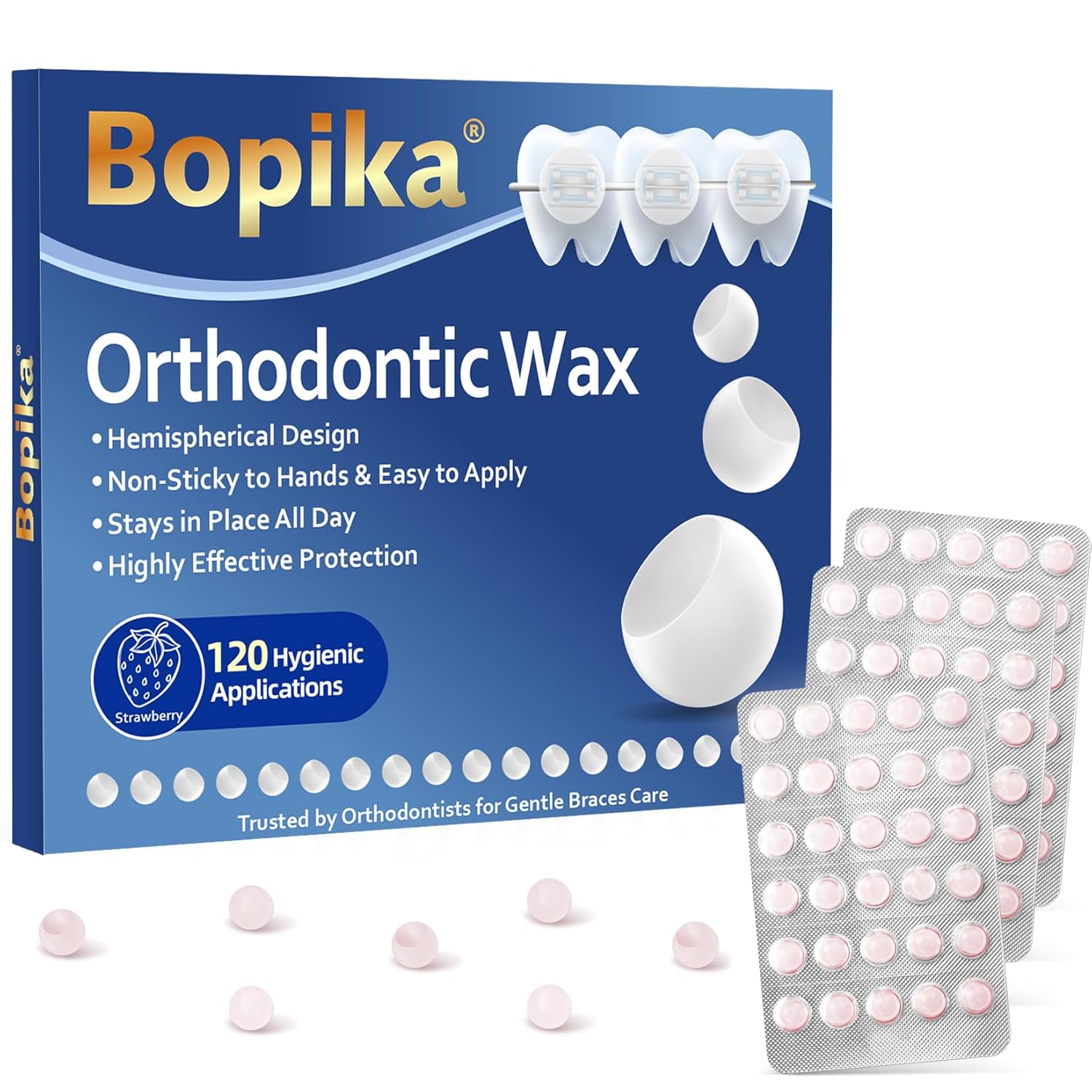 Bopika Orthodontic Wax for Braces Wax Dots 120 Individually Wrapped, Strawberry Flavored Dental Wax for Comfort & Protection