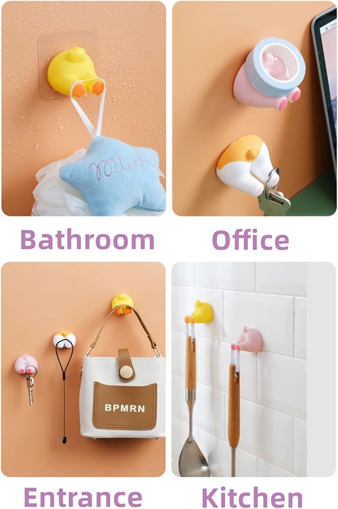 Cute Cartoon Animal Toothbrush Holder Wall Mount Hook Bathroom Kitchen Utility Hanger Toddler Kids Storage Organizer Cable Key Towel Hat Hanging Rack Duck Design