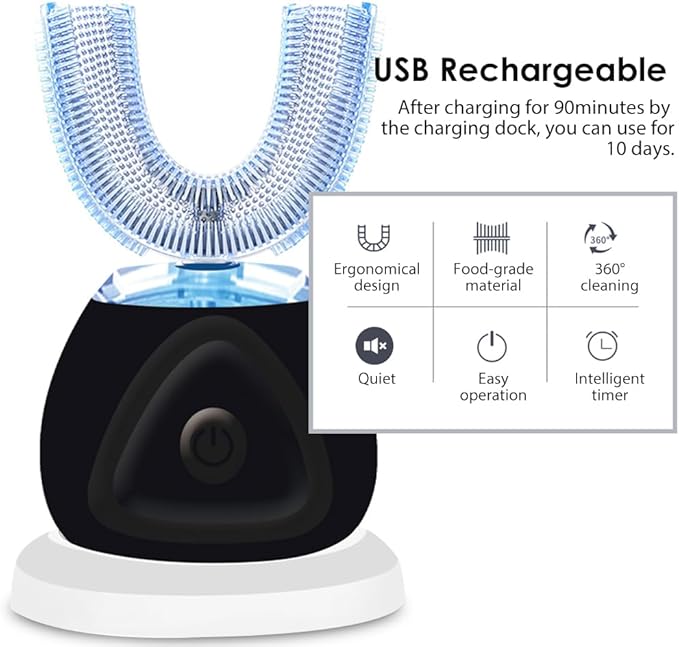 - Ergonomical Design: Unique U-shape design can fit the gums better than traditional toothbrush; Combined with high-frequency sonic technology, this electric toothbrush could provide better teeth cleaning and oral protection