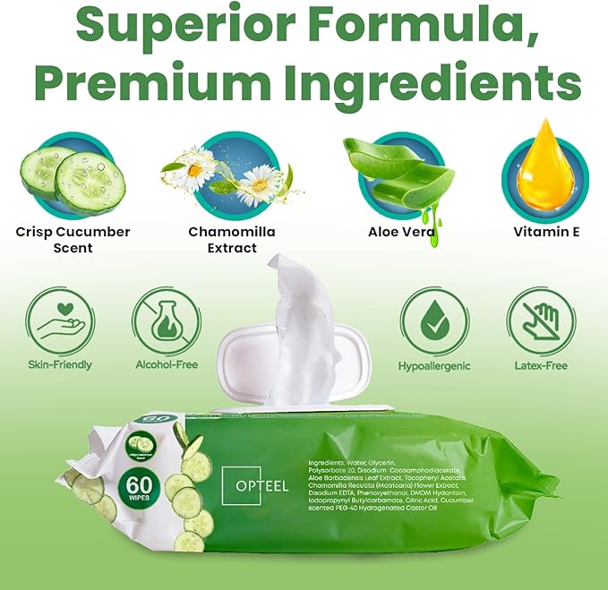 - SCENTED WITH A REFRESHING CUCUMBER TOUCH – These adult wipes offer a light, soothing cucumber scent for a fresh, clean feel. Infused with aloe vera and vitamin E, they gently cleanse and nourish sensitive skin, making them perfect for incontinence care, elderly hygiene, and daily refreshment.