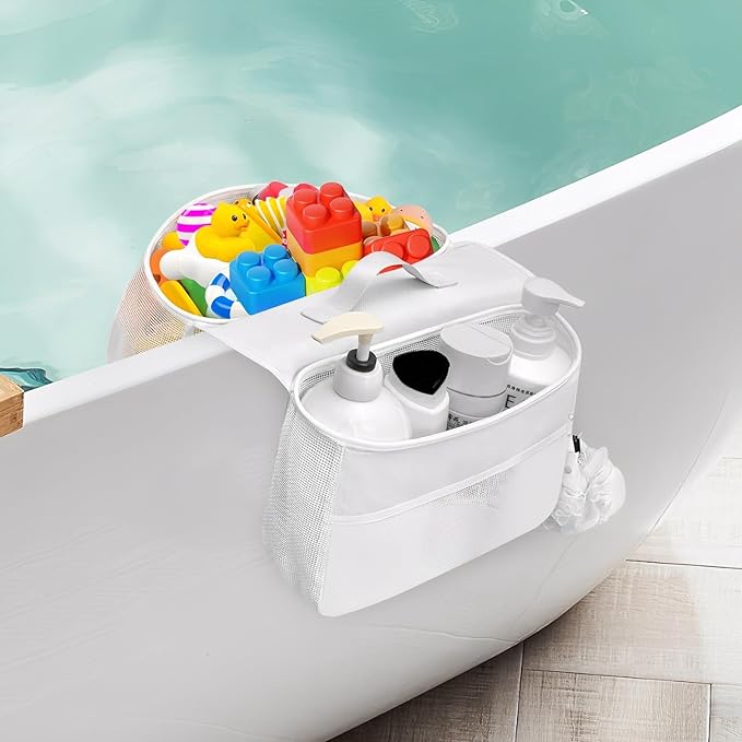 - 【Multi-functional Storage, Neat and Orderly】Our bath tub toy storage can not only store toys, but also comes with an additional compartment for daily necessities such as soap, shampoo, toothpaste, etc. It helps you use the bathroom space effectively, keep everything in order, and keep the bathroom clean and fresh at all times.