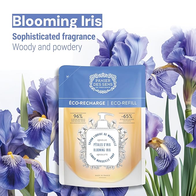 Panier des Sens - Liquid Hand Soap Refills โ Blooming Iris Foaming Hand Soap Refill โ French Coconut Oil Moisturizing Hand Wash - Kitchen & Bathroom Hand Wash- Soft Soap Refill 96% Natural - 34 Floz