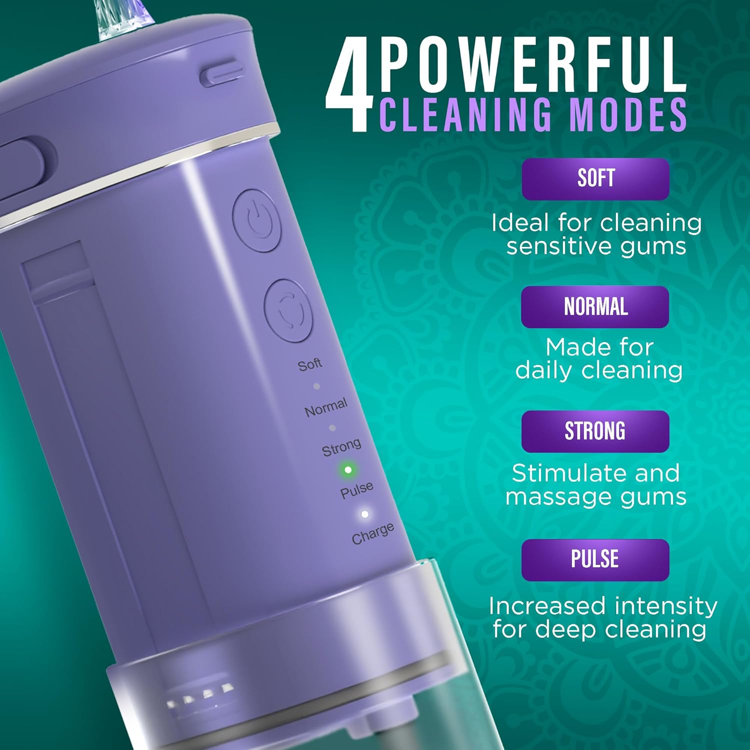 - DEEPER CLEANING: Featuring a high-pressure water pulse up to 1800 pulses/min, it effectively removes plaque and debris. Our portable water flosser offers 4 cleaning modes, expertly crafted for a thorough and adaptable cleaning experience.
