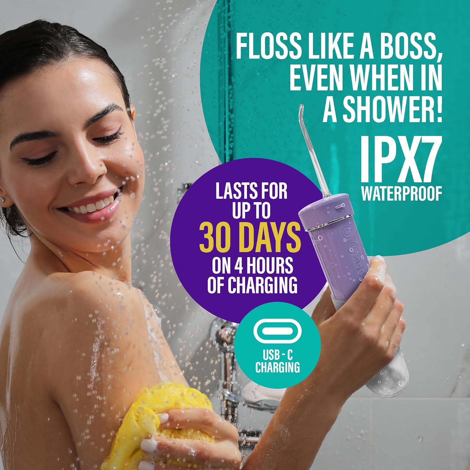 - CORDLESS & RECHARGEABLE: This cordless water flosser is perfect for home & travel, with a 290 ml tank & 2 replaceable tips for oral cleaning. Just 6 hours of charging ensures up to 30 days of battery life.