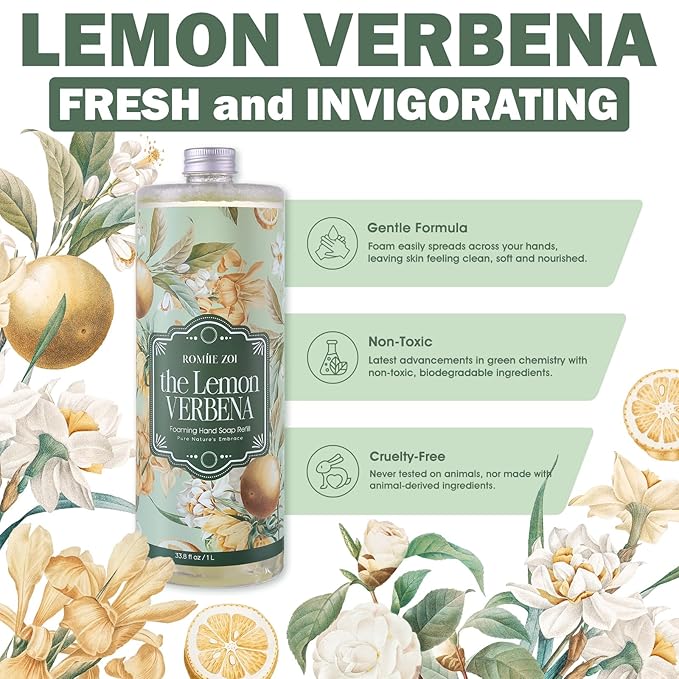 - 【Refreshing Scents Collection】Revitalize your routine with the fresh, citrusy lift of Lemon Verbena. Powered by natural lemon and verbena extracts, this foaming hand soap refreshes without drying—delivering a light, airy lather that’s both skin-friendly and eco-conscious.