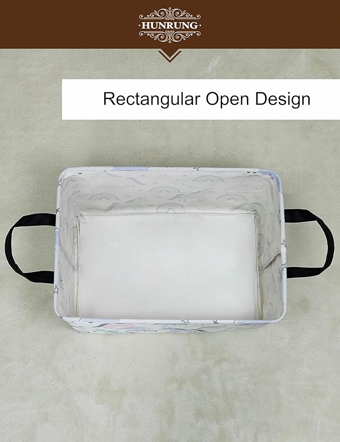 HUNRUNG Rectangle Storage Basket Cute Canvas Organizer Bin for Pet/Children Toys, Books, Clothes Perfect for Rooms/Playroom(REC-Star Unicorn)