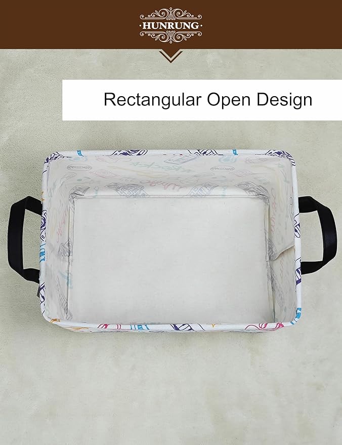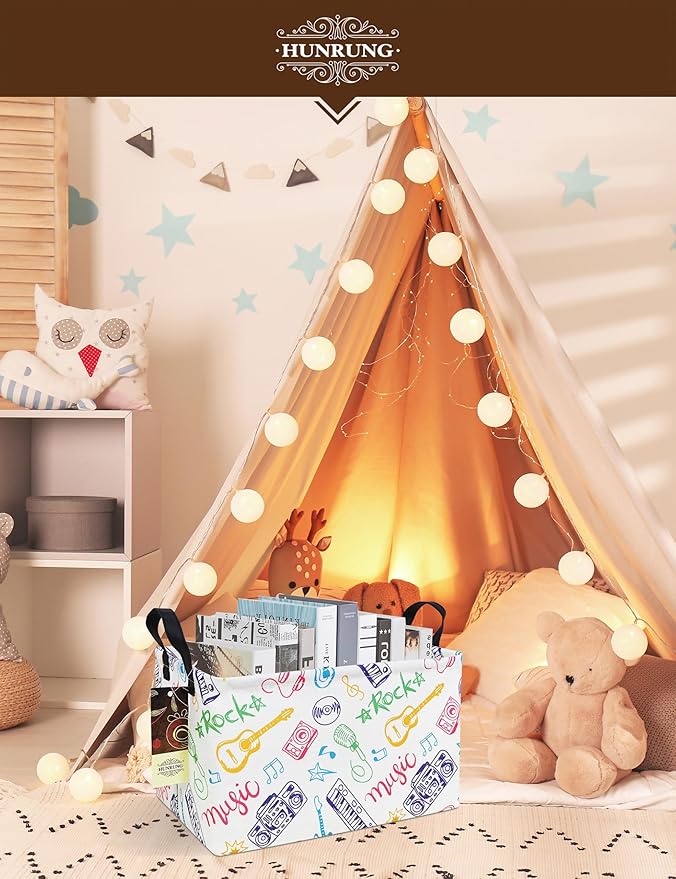 HUNRUNG Rectangle Storage Basket Cute Canvas Organizer Bin for Pet/Children Toys, Books, Clothes Perfect for Rooms/Playroom(REC-Musical instrument)