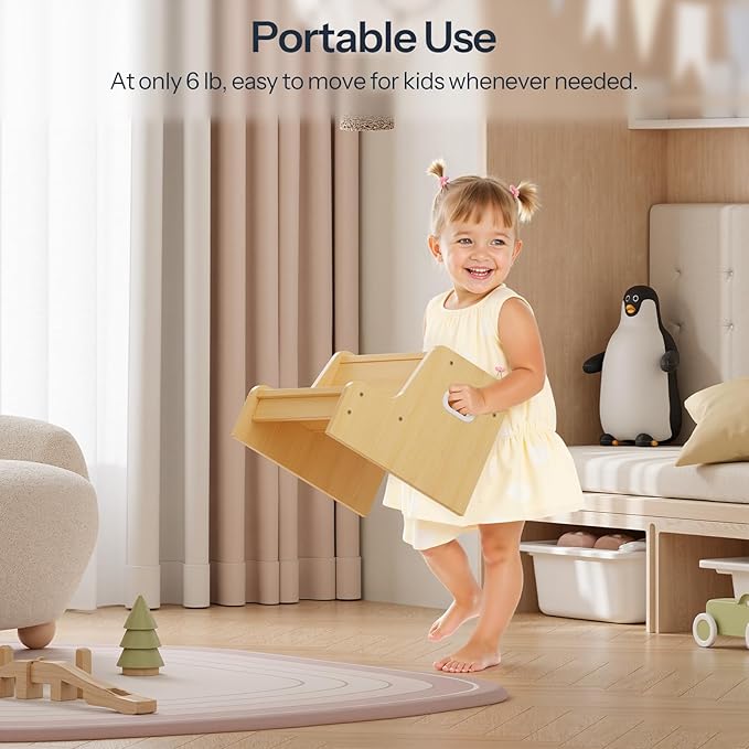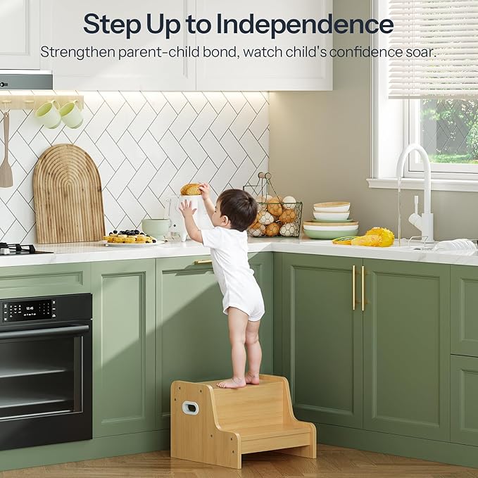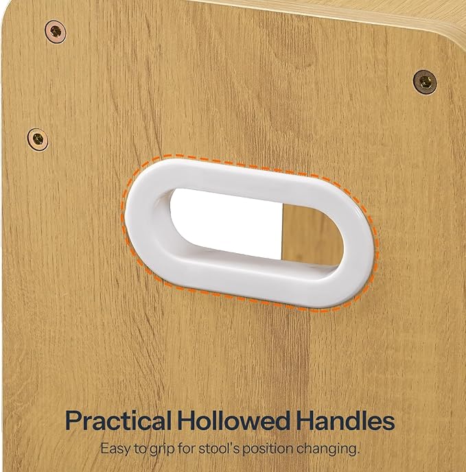 - Safety You Desire: For those parents struggling with daily training and and getting your kid to reach. The thick non-slip pads on the bottom grips the ground when the kids go up and down the steps. Wooden step stool ensures load-bearing capacity, which is perfect for carrying children's weight