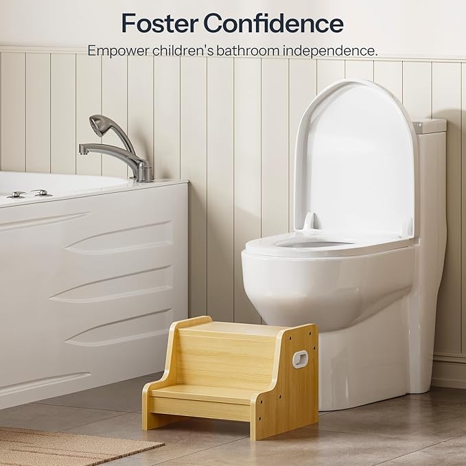 HOOBRO Step Stool for Kids, Two Step Toddler's Stool, Kids Potty Training Stool with Handles, Non-Slip Pads for Safety, Easy to Move, for Sink, Bathroom, Bedroom, Natural NL01JD01