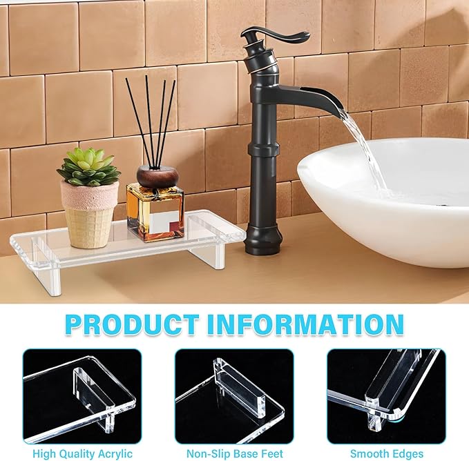 - Spacious & Versatile Design- This Acrylic Bathroom Counter Tray holds perfume bottles, soap dispensers, candles, plants, and more. Keep essentials organized and countertops clutter-free with this large bathroom tray countertop organizer.