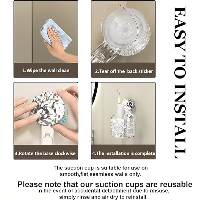 - Multi-Scene Versatility: Seamlessly blend functionality and style with our suction cup toothbrush holder, ideally suited for bathrooms, kitchens, or bedrooms. Perfect for toiletries, kitchen gadgets, and everyday essentials, it enhances space efficiency in any setting.